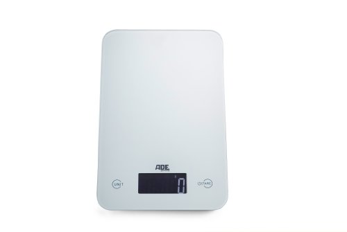 ADE Germany is a leading innovator in consumer scales. ADE crosses the line from pure functionality (weighing accurately) to design aesthetics. ADE's expertise is also respected for its hospital and industrial scales. The Slim by ADE, Electronic Kitchen Scale, has a sleek and slick iPod-like look. Slim can be stored upright on a bookshelf or flat in a drawer. Scale weighs dry and liquid ingredients in pounds, fluid ounces or grams, milliliters, in increments of .04-ounces/1 gram. The add 'n weigh (tare) function allows for weighing all ingredients in same container. This compact scale is well suited to weigh letters accurately, or to weigh parcels up to 11-pounds. Weighing surface is made of safety glass. Two sensor-touch buttons, no pressing necessary, just a light touch to operate. 2.25-inch by 1-inch LCD display. Two CR 2043 lithium batteries included.