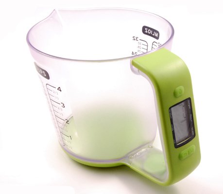- Accurate digital kitchen scale and measuring jug for solids and liquids
